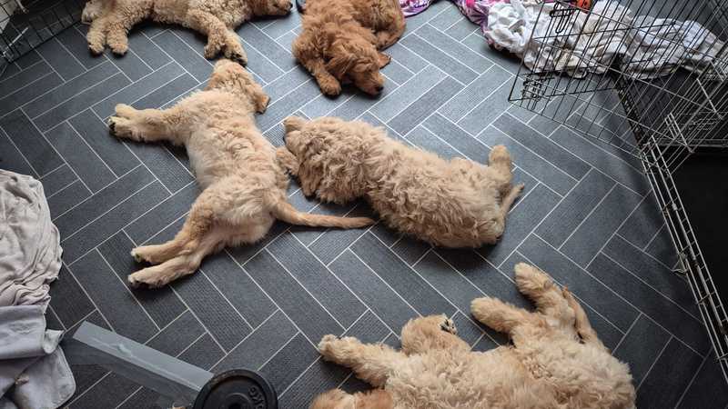 Born 7 Sept 25. Mum, Stevie, is an F1 GoldenDoodle and dad, Pickle, is F2 and were raised by the breeder with full assistance from Crucially Canine, so these pups have been known to us since birth. Mum was also trained by Crucially Canine as a pup.